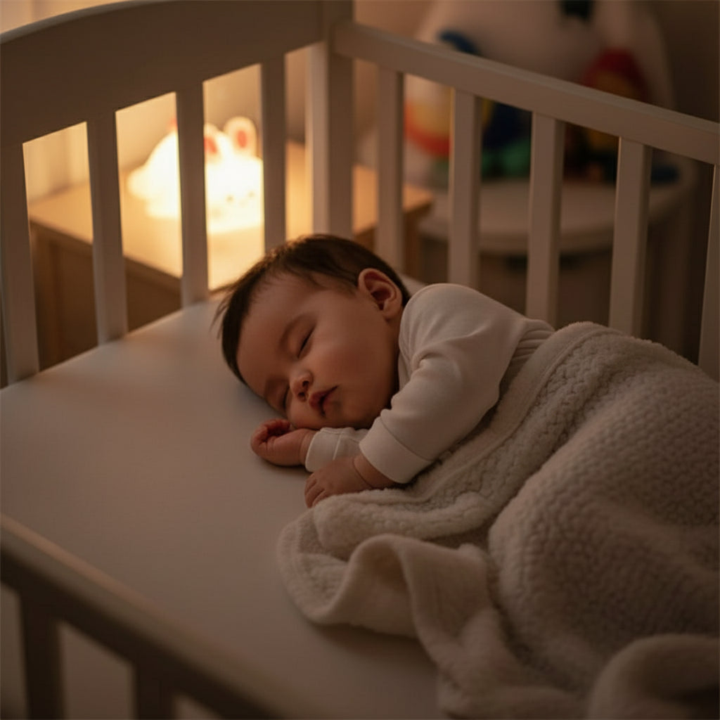 Lampička se sama vypne, když dítě usne → šetří baterii i váš čas.
